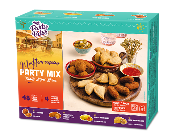Party Bites Mediterranean Party Mix voor oven en airfryer (diepvries, doos met 4x12 = 48 stuks)